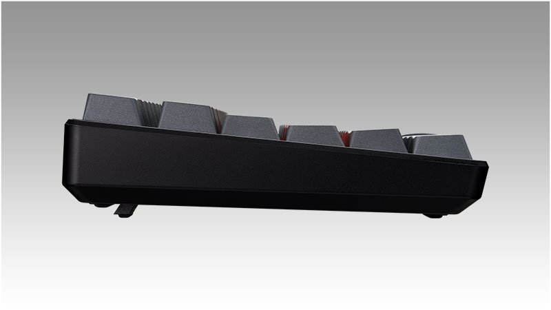 耐久性に優れるPBT素材に昇華印刷で印字したキーキャップを採用しており、ゲームプレイ時に重要なWASDキーは視認性の高いレッドキーキャップに設定しています。
